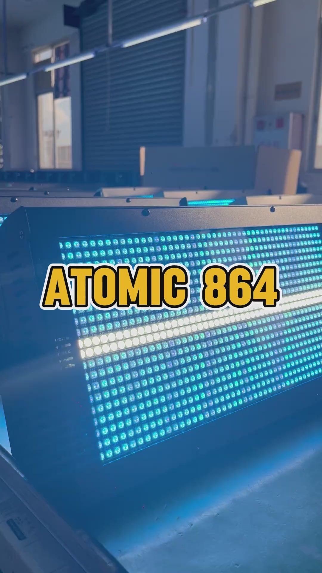 El Atomic 864 es un panel LED de alto rendimiento diseñado para clubs, eventos y aplicaciones escénicas. Incorpora 864 LEDs RGB y 96 LEDs blancos, ofreciendo efectos dinámicos, estroboscópicos y wash con control por zonas y múltiples “shapes” integrados. Compatible con DMX512, RDM, master/slave y sonido, permite un control preciso en modos de 4, 12 y 32 canales. Su construcción compacta y ligera de 6,5 kg lo convierte en una solución versátil para instalaciones profesionales.